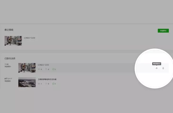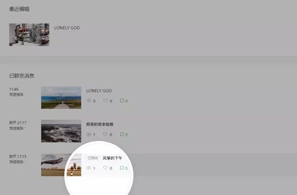 3、修改完成,在首頁已群發(fā)列表,可以看到文章狀態(tài)變更為“已修改”。用戶訪問文章將看到已更新的內(nèi)容。文章底部將顯示修改時(shí)刻。