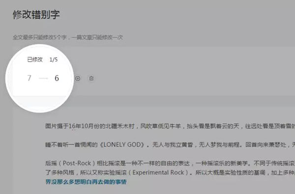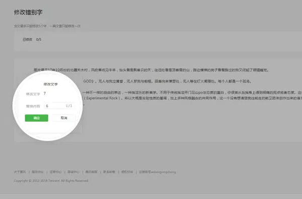 為了給運(yùn)營者、讀者提供更友好的編輯、閱讀體驗(yàn),公眾平臺(tái)新增修改文章錯(cuò)別字功能,支持運(yùn)營者對(duì)已群發(fā)文章進(jìn)行小范圍修改。每篇文章允許被修改一次,修改范圍僅限正文內(nèi)五個(gè)字。