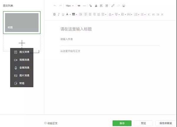 公眾平臺后臺的編輯器內也增加了轉載入口,你可以直接搜索一篇文章,查看是否能轉載。