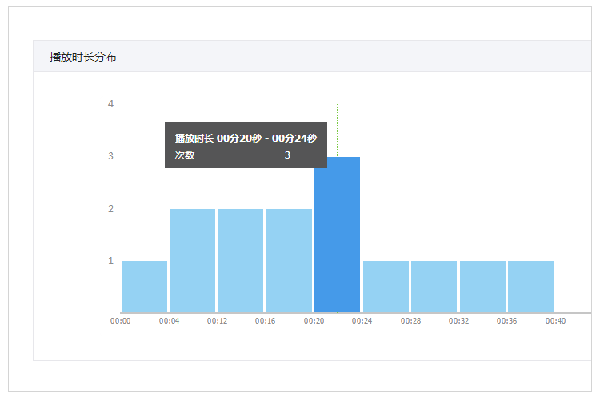 二、可根據(jù)視頻標題選擇單篇圖文內(nèi)插入的視頻,查看播放數(shù)趨勢、播放時長分布、拖拽分析和觀看時間分布。