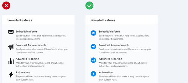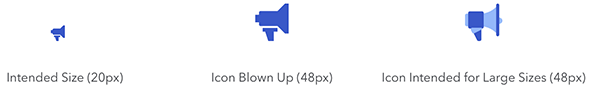 當設(shè)計著陸頁的時候,可以會突出產(chǎn)品的功能,這時你需要一些大的圖標作為視覺錨點,這樣的話你很可能會去 Font Awesome 或 Zondicons 這樣的網(wǎng)站找?guī)讉€免費的矢量圖標,然后將其放大到你所需要的尺寸。雖說矢量圖可以無損的放大,但是一個通常只有16×16 的圖標放大三四倍,它固然無損,但是在視覺上就顯得頗為不專注了:缺乏細節(jié),總感覺過于矮胖。