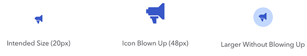 不過,若這些小圖標是你唯一能夠搞得到的素材的話,那么不妨試著將它置于另外一個帶有顏色的圖形當中:這樣的設(shè)計不僅能夠讓圖標達到預(yù)期的視覺體積,而且看起來要比單純放大,看起來細節(jié)會更多一些。