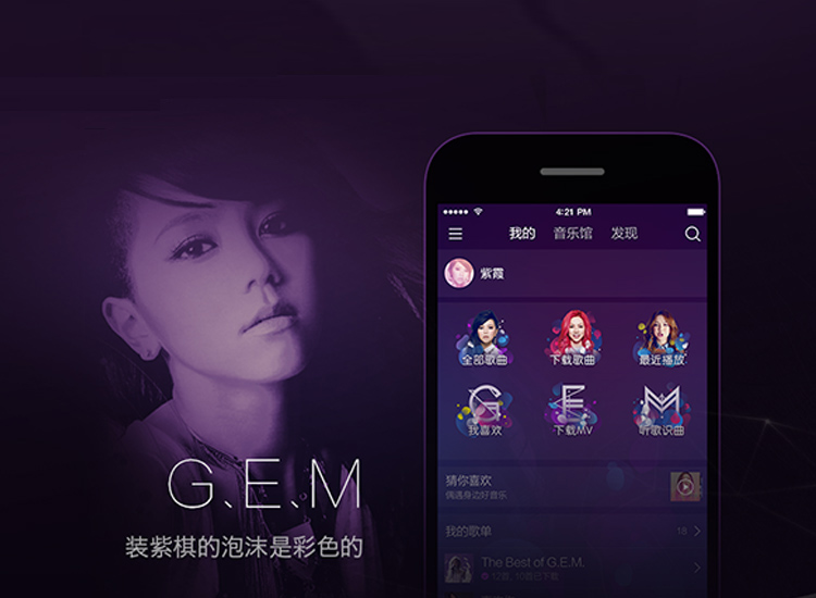 鄧紫棋:肺活量極大,唱歌超好聽,眾男生心中的女神鄧紫棋,名字里有“紫”字的美女十分適合夢幻的紫色調。設計靈感來自GEM的成名歌曲《泡沫》,在彩色泡沫包圍下,幻化為美麗的人魚公主。圖標設計主要選用了GEM經典的造型,當然還有粉絲們熟悉的“金魚”。