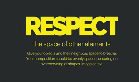 “Respect”這個詞的字間距被壓縮,從而讓整個單詞都顯得更有凝聚力,讓人感到和諧,舒服。在平面設計中排版的位置是非常重要的,因此各種元素間距需要根據實際情況來調整,當內容多的時候可以適當收緊,當少的時候可以適當放松。同時還有間距大小都需要兼顧到基本的可讀性,不宜分太開,同時也不易離太近,這樣的話很容易在一定的程度上增加了閱讀的難度。