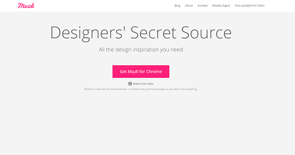 Muzli是一個Chrome擴展應用,聚集了Designer News、Dribbble、Behance等資源庫的內容,所有你需要的設計靈感這里都有。每次在Chrome Muzli中打開新的標簽,你都會一眼看到各個網站的精選內容,相信在這些精選的內容中,您一定能夠找到自己所需要的。