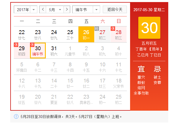 一年一度的端午節即將到來,過端午節,是中國人二千多年來的傳統習慣,由于地域廣大,民族眾多,加上許多故事傳說,于是不僅產生了眾多相異的節名,而且各地也有著不盡相同的習俗。其內容主要有:女兒回娘家,佩香囊,帶荷包,掛鐘馗像,蕩秋千,吃粽子,喝雄黃酒等等,不過小編覺得大多小伙伴應該和小編一樣,最關心的并非是這些,而是端午假期!
